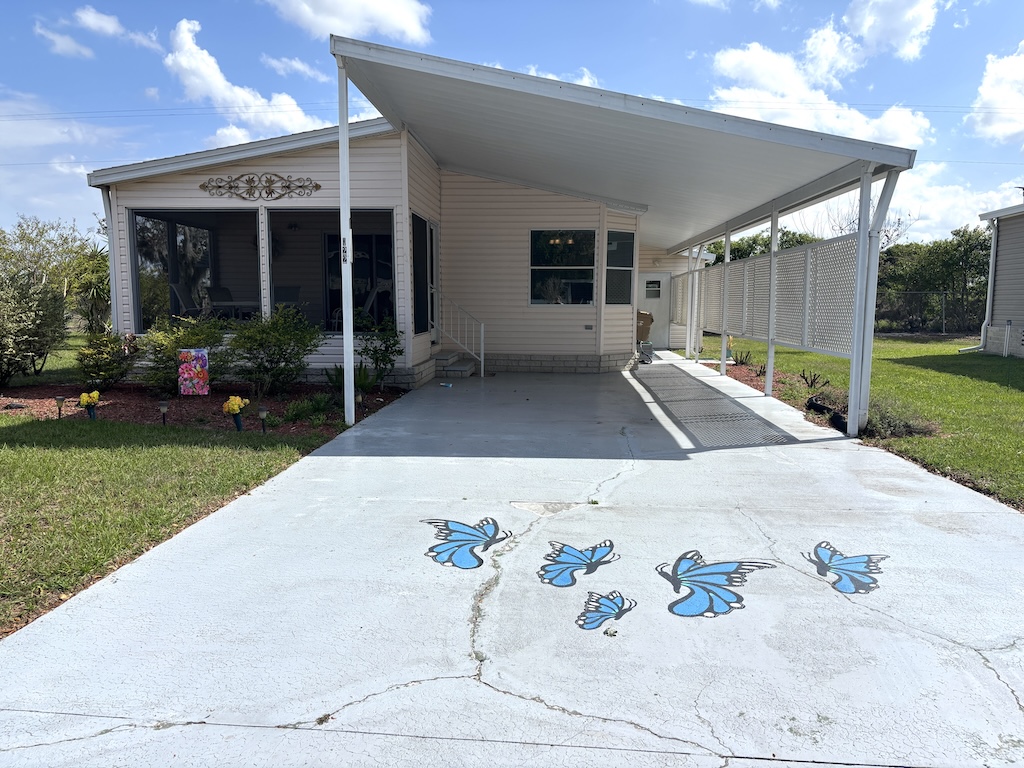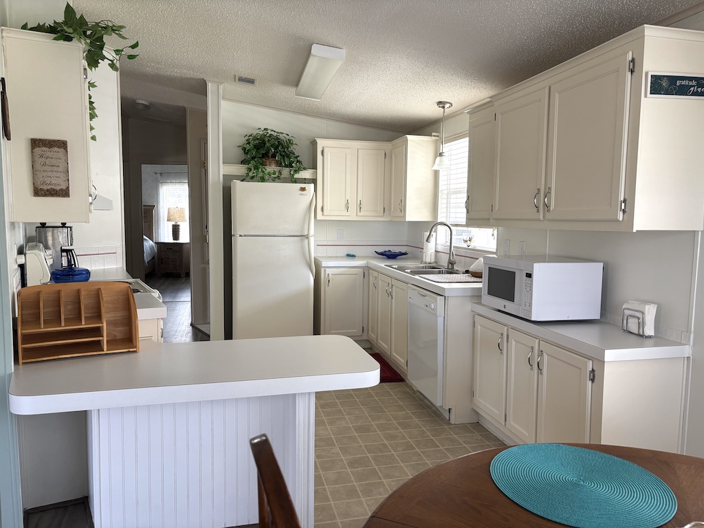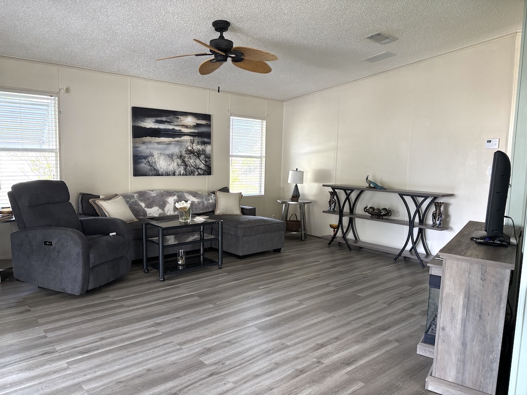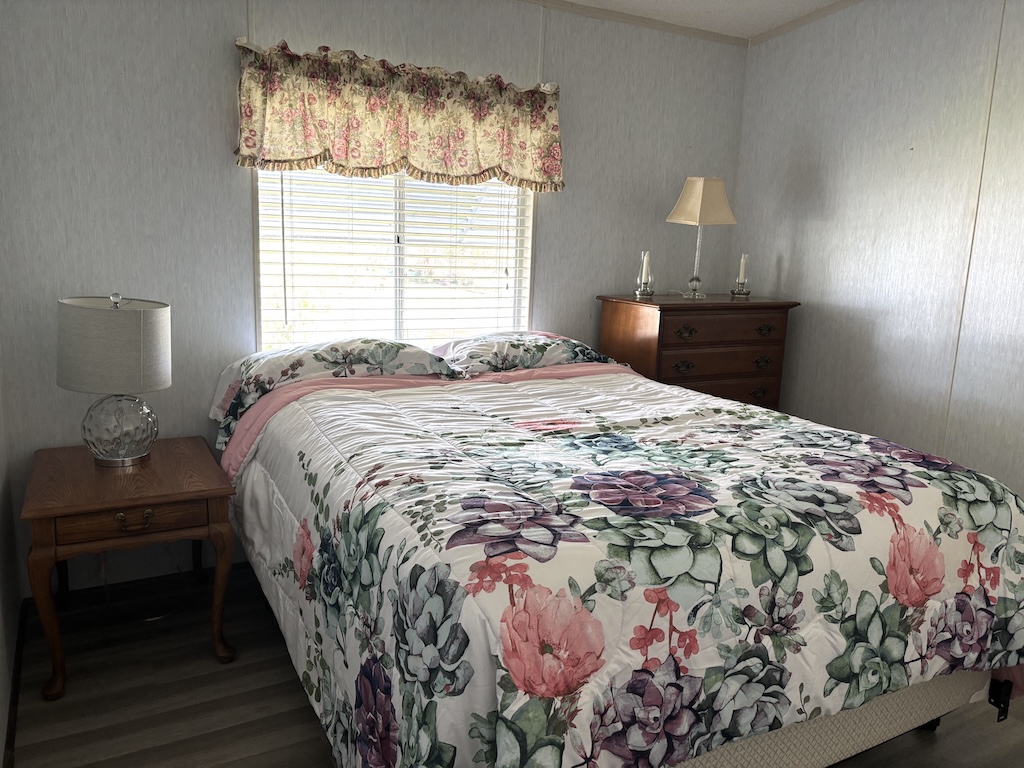 THIS IS ONE YOU DON’T WANT TO MISS!! BEAUTIFULLY UPDATED HOME, LOW LOT RENT AND TONS OF PARK AMENITIES. This well-maintained 2-bedroom, 2-bathroom mobile home offers comfort, value, and important updates throughout. Major systems provide peace of mind, including a 3-year-old central AC unit and a 2-year-old shingle roof, along with a recent clear 4-point inspection completed by the sellers. Inside, the home features no carpeting, with some new vinyl plank flooring added in the bedrooms for a fresh, updated feel. The primary bathroom has been partially remodeled, and the kitchen includes updates such as a new sink, garbage disposal, and fresh paint. The living room has also been newly painted and features a cozy electric fireplace, creating a warm and inviting space. Indoor laundry adds everyday convenience, making this home a practical and move-in ready option. **Home is being sold as fully furnished, as described.**