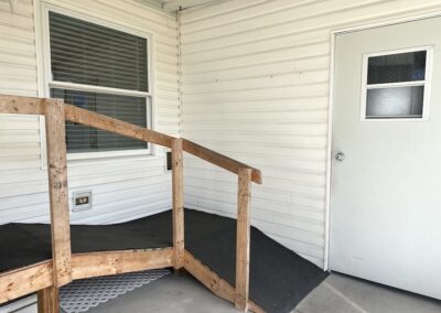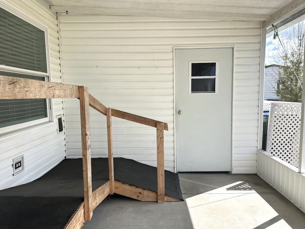 THIS BRIGHT AND WELL-MAINTAINED 2-BEDROOM, 2-BATHROOM HOME IS THOUGHTFULLY DESIGNED WITH FULL HANDICAP ACCESSIBILITY OFFERING COMFORT AND CONVENIENCE THROUGHOUT! A handicap ramp at the entrance provides easy access, while the open layout and vaulted ceilings create a spacious and airy feel inside. Updated double-pane windows allow natural light to fill the home while helping with energy efficiency. The home has been well cared for and offers a welcoming atmosphere with plenty of room to move comfortably. Outside, a double carport provides convenient covered parking. With its accessible design, open living space, and excellent upkeep, this home is a wonderful opportunity for anyone seeking comfort, functionality, and easy living. **Home is being sold unfurnished, as is.**